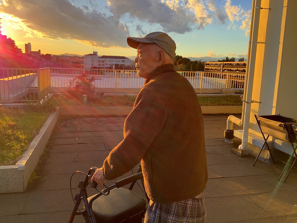 秋も深まり、空気が少し冷たく感じられる中、ご利用者様も「寒いなぁ、もう帰ろう」と笑いながらお話しされ、5分ほどで室内に戻られました。