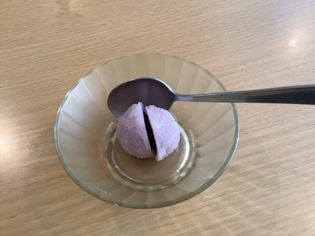 ご利用者様には、一週間前に『桜餅』または『ミニシュークリーム』のどちらかをお選びいただきました。当日は、ご自身で選ばれたおやつを「美味しい!」と笑顔で召し上がっていらっしゃいました。