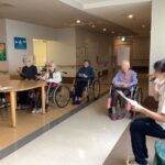 軽く体をほぐしてから、「ふるさと」を歌いました。ハーモニカにあわせて口ずさみ、和やかなひとときとなりました。