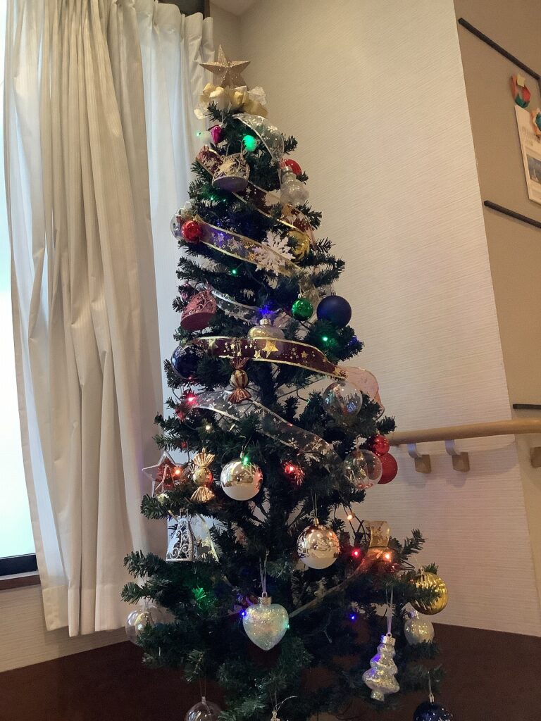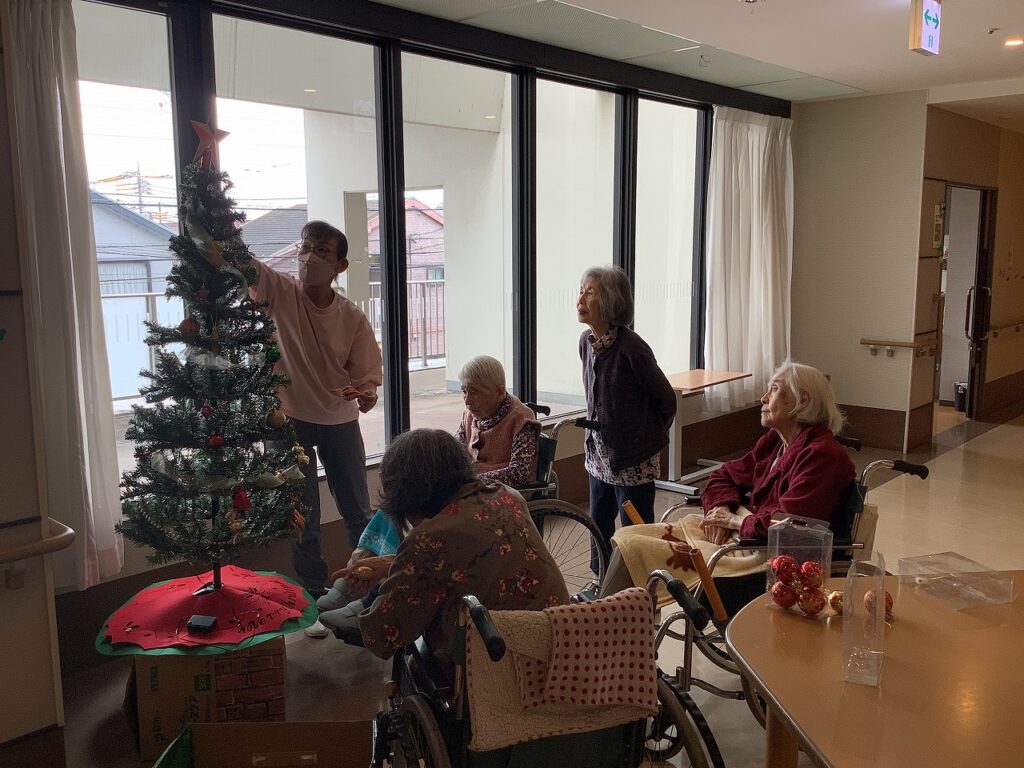 Kami menghias pohon Natal bersama para penghuni sambil meminta bantuan mereka.