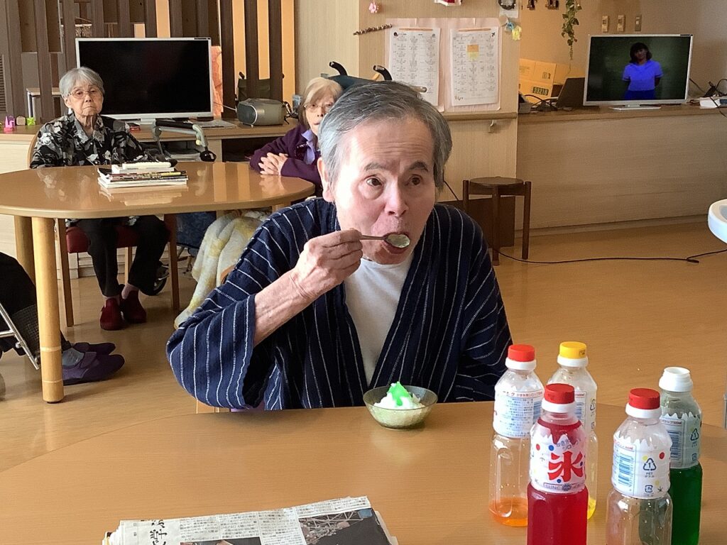 Di puncak musim panas, para penghuni di Unit Burung dan Unit Empat Musim menikmati kegiatan rekreasi berupa es serut dan karaoke.