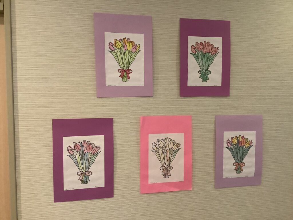 Sambil bernyanyi bersama staf, para pengguna layanan mewarnai gambar bunga dengan warna pilihan masing-masing dan menikmati waktu yang tenang dan menyenangkan.
