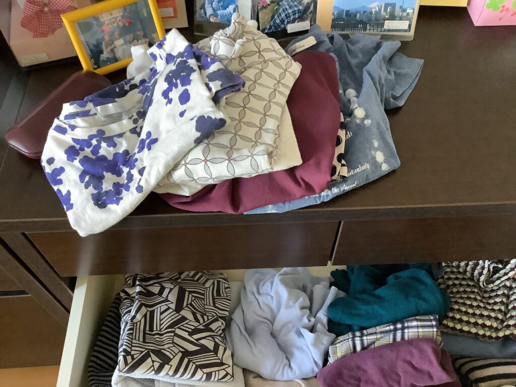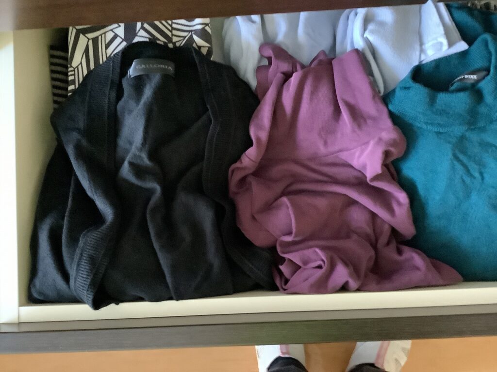 Staf yang bertanggung jawab membantu menata pakaian dan mengganti pakaian musim panas dengan pakaian yang lebih hangat.