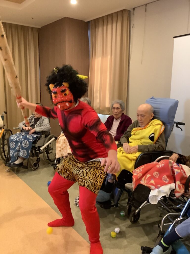 Hari ini, di seluruh fasilitas kami mengadakan acara “melempar kacang pada perayaan Setsubun”.
