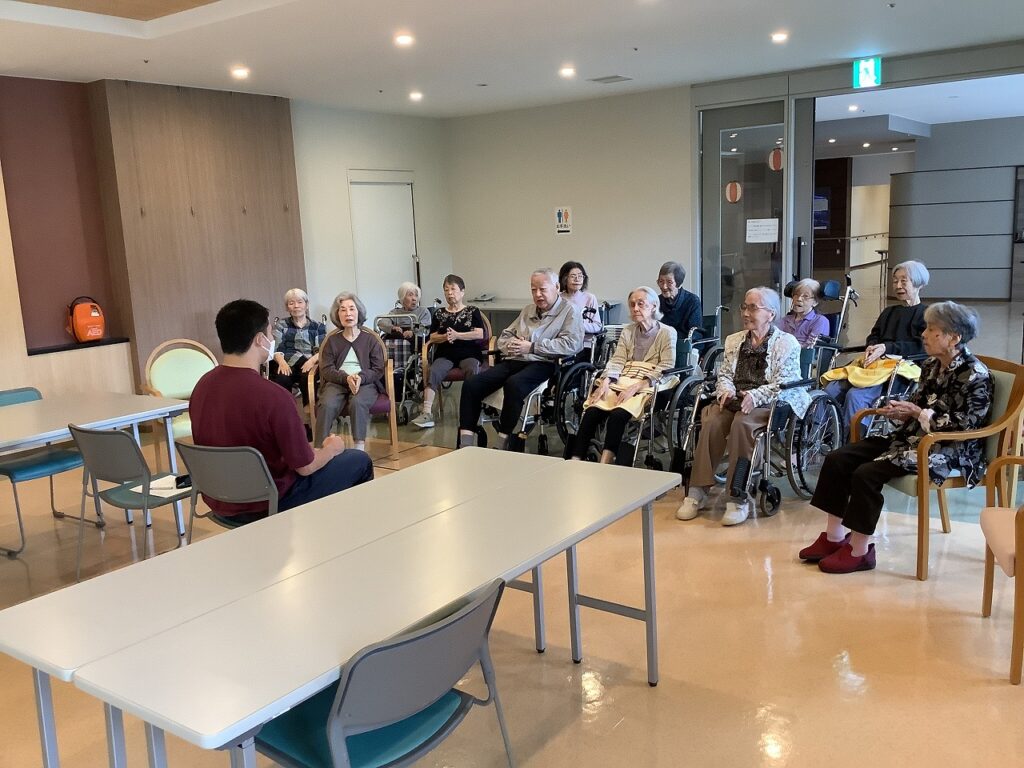 Hari ini, kami mengadakan kelas peregangan di “Aula Pertemuan Komunitas” yang terletak di sisi selatan lantai 1 fasilitas kami.